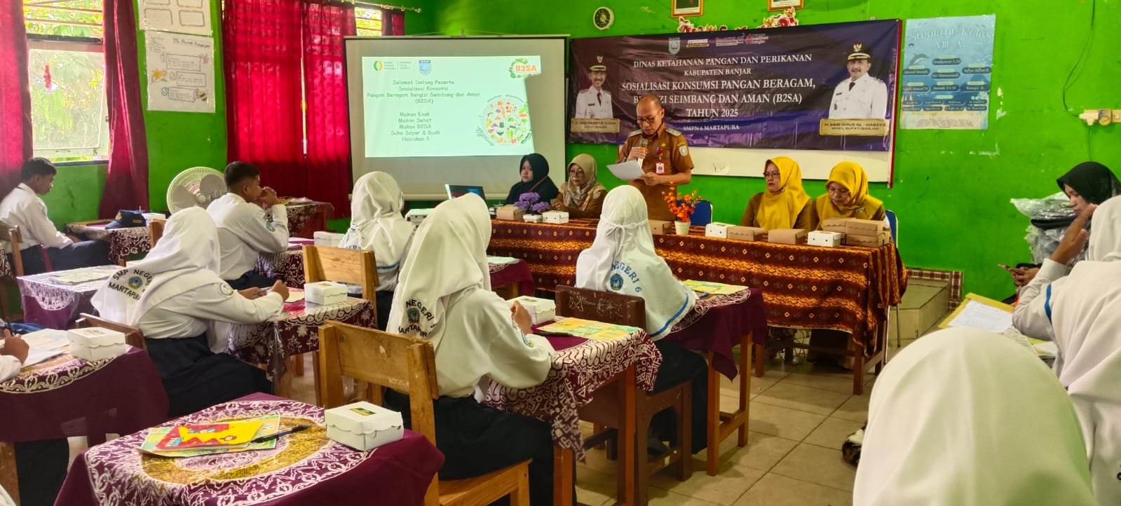 Dinas Ketahanan Pangan dan Perikanan (DKPP) Kabupaten Banjar menggelar kegiatan Sosialisasi Pangan Beragam, Bergizi, Seimbang, dan Aman (B2SA) bagi peserta didik tingkat SMP sederajat, Senin (6/10/2025).