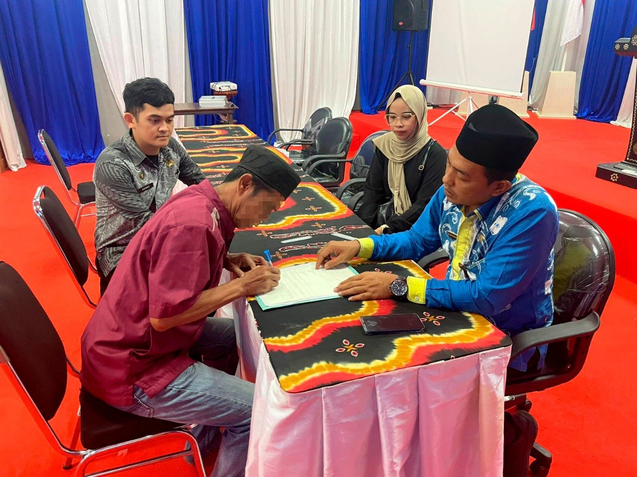 Kegiatan dihadiri langsung oleh plh.Kepala KUA Kec.Simpang Empat, Muhammad Shidqi Baidlowi bersama staf KUA dan keluarga WBP yang didampingi oleh staf pembinaan Lapas Batulicin.