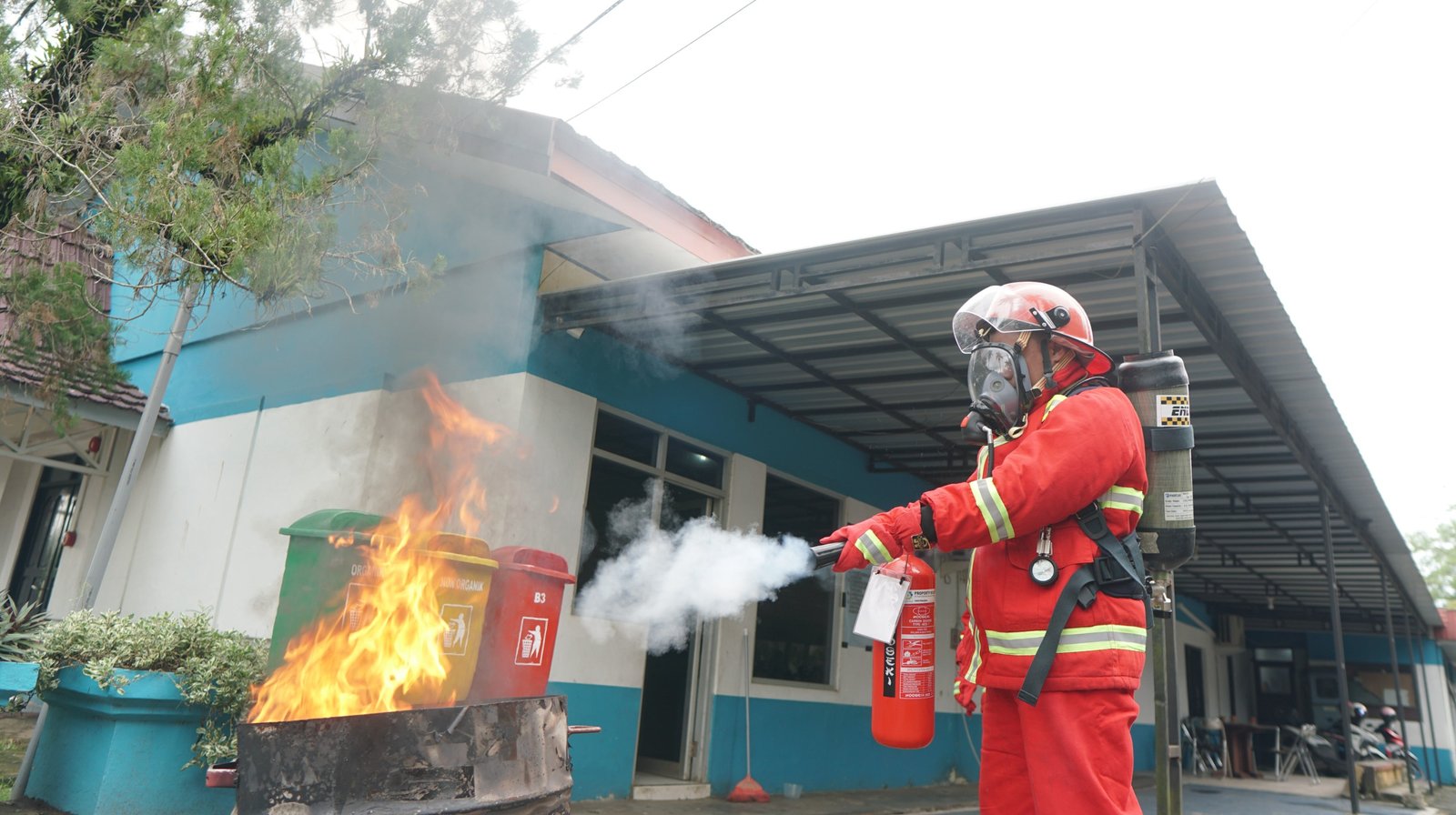 Simulasi pemadaman api oleh Tim Pemadam Kebakaran PLN UID Kalselteng.