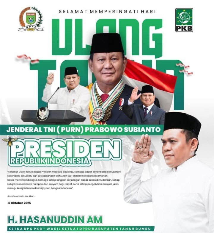 H. Hasanuddin yang juga menjabat sebagai Ketua DPC PKB Tanah Bumbu, secara eksplisit menonjolkan doa dan harapan terbaik untuk masa kepemimpinan Sang Presiden.